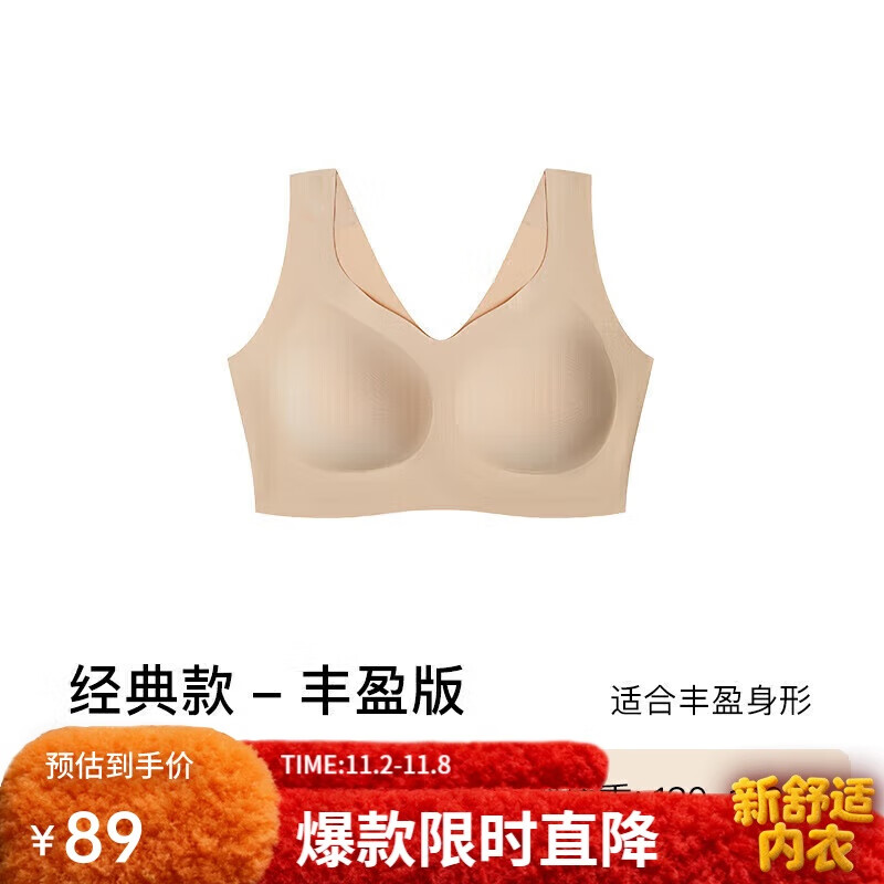 ubras虞书欣同款无尺码背心文胸女士内衣女隐形粉底液内衣兰花烟常规