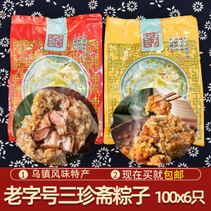 三珍斋鲜肉粽子蛋黄粽礼袋装端午嘉兴粽子乌镇特产100g*6只装
