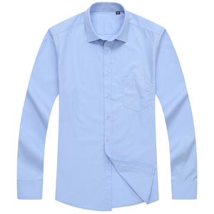啄木鸟秋男士长袖棉衬衫中年抗皱商务职业正装宽松衬衣休闲加大码