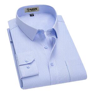 啄木鸟蓝色衬衣男长袖薄款商务正装中年宽松条纹免烫工装纯色衬衫