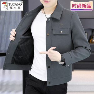 啄木鸟纯色翻领夹克外套男爸爸装