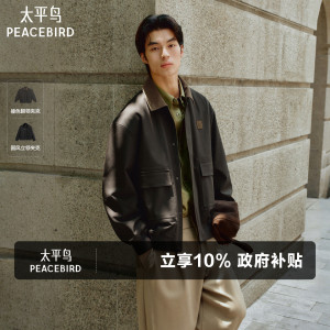 【巴恩风】太平鸟男装刺绣行政夹克pu皮拼接休闲外套通勤时尚茄克