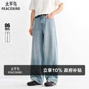 太平鸟男装牛仔裤26夏季新款浅色质感水洗百搭时尚薄款阔腿长裤
