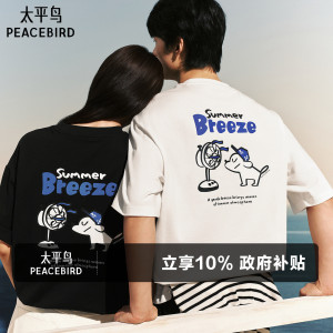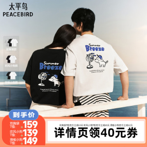 太平鸟男装 滑板小狗联名重磅印花短袖T恤2026夏新款圆领宽松体恤