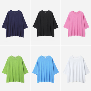 WTX08191 茉莉雅集 45*R日系竹节棉圆领落肩侧开叉宽松短袖T恤女