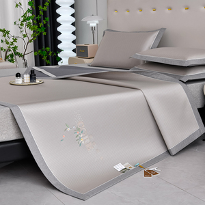 恒源祥绣花凉感冰丝凉席三件套可机洗可折叠凉席床席床笠款软席