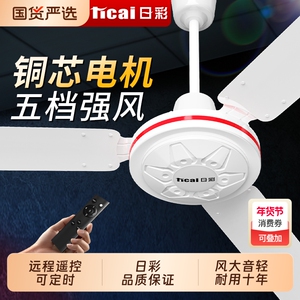 日彩黑色吊扇家用客厅宿舍工业吊顶电风扇餐厅大风力48寸56寸遥控