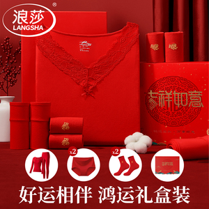 浪莎本命年酒红色秋衣秋裤套装