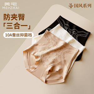 美宅国风蕾丝高腰内裤女10A抗菌加长蚕丝裆高颜值冰丝三角裤性感