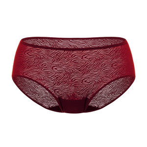 【小青提-斑纹蕾丝】遐中腰平角裤包臀不夹臀纯棉裆红色内裤女薄