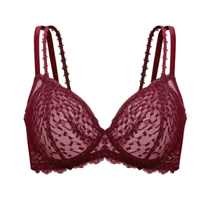 【小青提-斑纹蕾丝】遐红色本命年内衣女微聚拢无痕大胸显小文胸