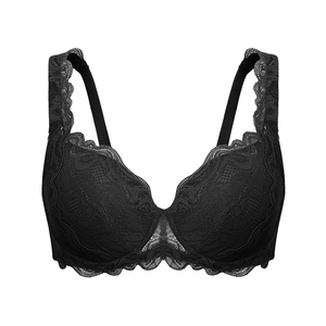 【小花漾】遐1mm超薄全罩杯蕾丝内衣女大码防下垂大胸显小文胸罩