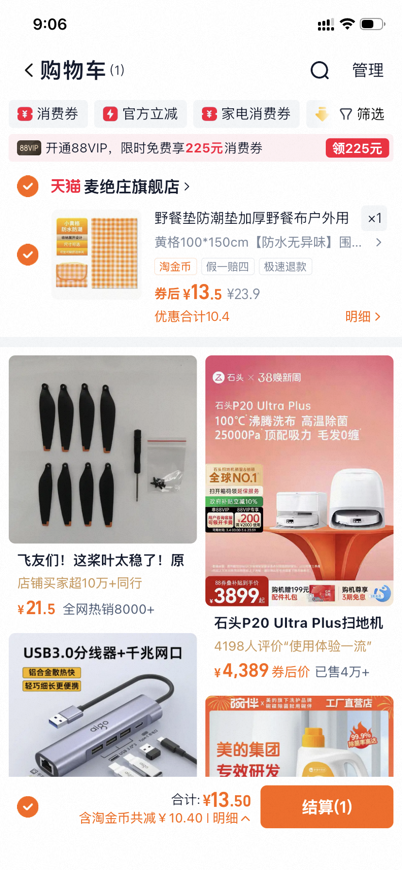 03月04日:野餐垫春季野营必备神器 23.9-10元券 到手13.9